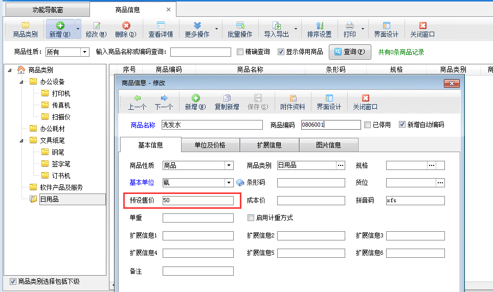 信管飛RMS、信管飛送貨單軟件等都支持開單前錄入好商品的預(yù)設(shè)價格,如預(yù)設(shè)采購價、預(yù)設(shè)售價等,方便開單選擇商品時自動獲取價格信息。如下圖所示,設(shè)置商品“洗發(fā)水”預(yù)設(shè)售價50元/瓶,以送貨單軟件為例示范一下如何設(shè)置新開送貨單時可自動取商品預(yù)設(shè)售價。