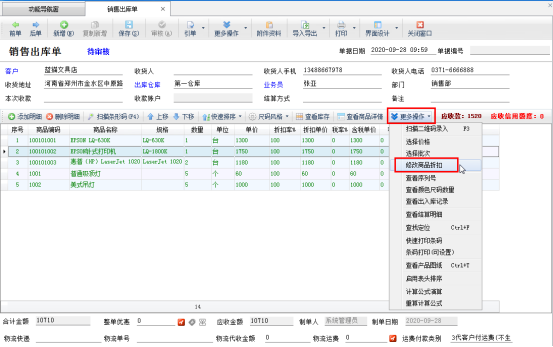 在單據明細上方,點擊“更多操作”—》“修改商品折扣”,彈出修改商品折扣率的窗口,輸入折扣(例如:8折優(yōu)惠就輸入80),然后點擊“確定”進行保存,如圖2、圖3所示: