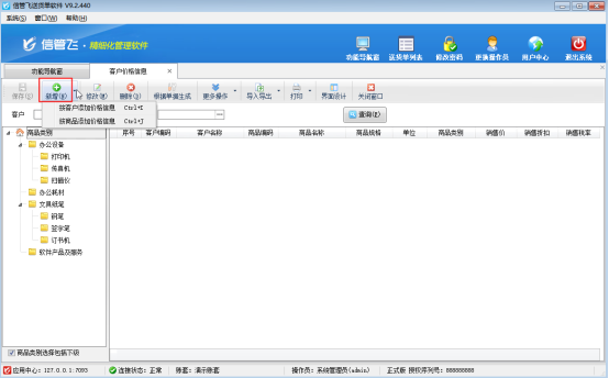 按客戶添加價格信息:點擊“新增”—》“按客戶添加價格信息”可以根據不同客戶添加不同商品價格信息。