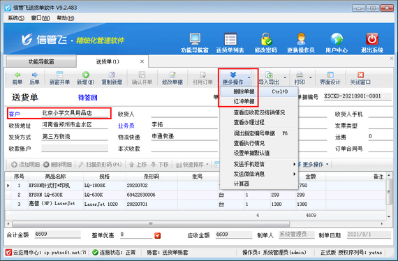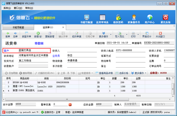 信管飛送貨單軟件是一款針對中小型企業(yè)開發(fā)的集送貨管理、應(yīng)收款管理等為一體的送貨單打印軟件。使用軟件時如果送貨單確認開單后,發(fā)現(xiàn)客戶名稱有誤,系統(tǒng)不支持直接修改,那么該如何處理呢?