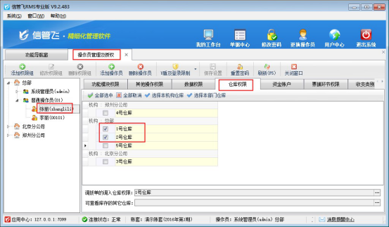 倉庫權(quán)限設(shè)置只有系統(tǒng)管理員賬號可設(shè)置,操作員不支持設(shè)置。