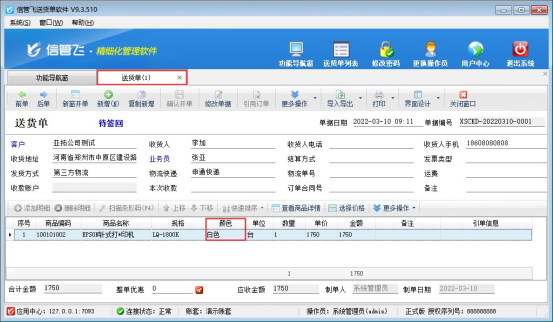 界面設計配置完成后,打開微信端軟件開單界面。會顯示“顏色”列,如下圖所示: