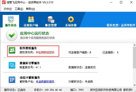 加密鎖設(shè)備如果長時(shí)間使用可能有損壞情況,目前我們支持加密鎖授權(quán)更換為授權(quán)形式授權(quán),授權(quán)目前免費(fèi)更換。本文以“信管飛送貨單軟件”為例,示范下如何變更授權(quán)形式?