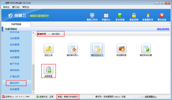 信管飛RMS軟件、信管飛倉庫管理軟件支持多賬套管理,新建賬套登錄是未啟用狀態,新開單時需要啟用賬套,默認啟用賬期是2021-1-1,如果需要從2022-1-1開始,需要修改啟用賬期,本文示范下如何修改賬套啟用賬期?