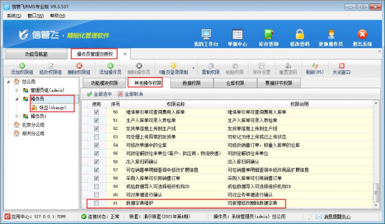 如果需要操作員可以修改“數據字典”,在系統管理—》操作員及授權界面,選擇操作員,在“其他操作權限”中勾選“數據字典維護”權限,然后保存設置,權限設置后才可以修改數據字典,如下圖所示: