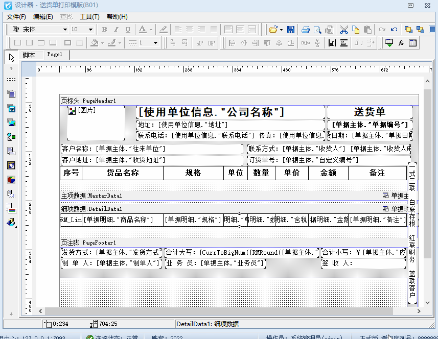 信管飛送貨單軟件是一款集開送貨單、打印送貨單、管理應收款和對賬單一體的軟件,送貨單的打印模板支持自定義設計多種樣式,軟件中默認自帶十幾種打印模板樣式,有用戶需要打印模板可以設計打單內容即打即停(有多少打印多少)的格式,本文以內置打印模板B01進行示范。
