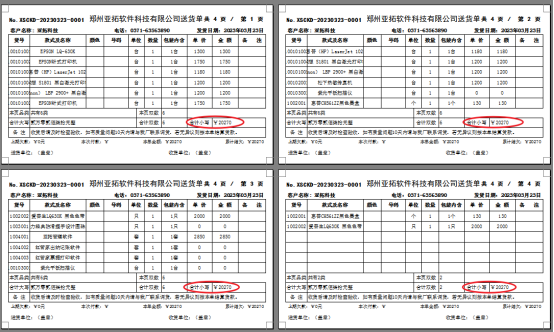 設置之后,保存模板,點擊預覽可以查看打印效果,每頁都會顯示金額小計,如圖所示: