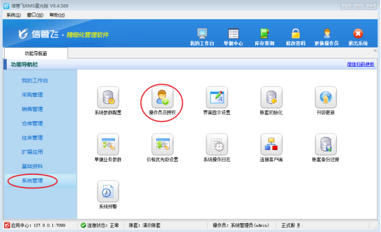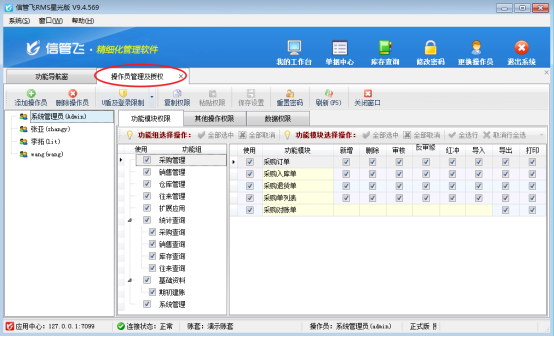 系統(tǒng)管理員賬號登錄軟件,在功能導航窗點擊“系統(tǒng)管理”—》“操作員及授權”即可進入到操作員管理及授權界面,如下圖所示: