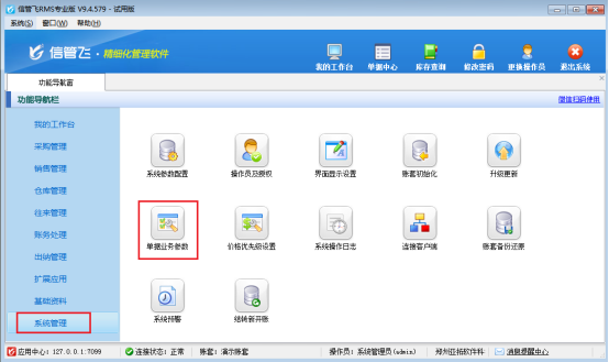在功能導航窗點擊“系統管理”—》“系統參數配置”—》“業務參數”,業務單據相關參數下,打勾“啟用消息提醒功能”,保存設置,如下圖所示: