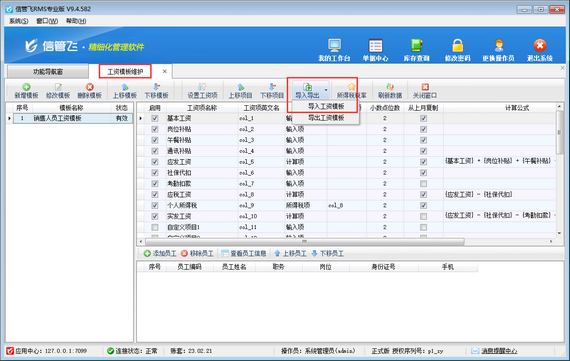 信管飛出納記賬軟件、信管飛RMS標(biāo)準(zhǔn)版、專業(yè)版支持維護(hù)工資模板和生成工資單,可以對(duì)公司內(nèi)部員工工資進(jìn)行管理,另外可以對(duì)不同的員工設(shè)置不同的工資模板。有用戶新的一年需要重新新建賬套使用軟件,并需要復(fù)制之前賬套的工資模板。本篇文章介紹下如何將工資模板配置文件導(dǎo)出并導(dǎo)入到新建賬套內(nèi)?