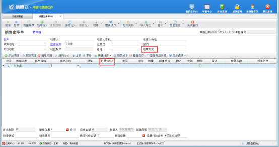 打開一個(gè)單據(jù)界面,單據(jù)由單據(jù)主體和單據(jù)明細(xì)兩部分組成,以“結(jié)算方式”和“擴(kuò)展信息2”為例,示范下如何把這兩項(xiàng)在開單界面取消顯示。