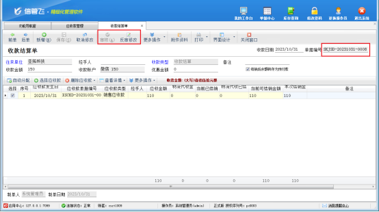 此文章相關(guān)演示視頻:反審修改收款結(jié)算單時(shí)提示對(duì)應(yīng)的應(yīng)收應(yīng)付款已核銷,如何解決演示視頻