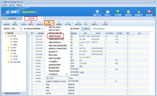 在功能導航窗點擊“基礎資料”,打開商品信息界面,點擊工具欄“批量維護商品信息”,進入“批量維護商品信息界面”如下圖所示: