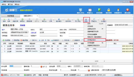 在單據(jù)開單界面點擊“打印”------“打印格式設計”,進入打印格式設計界面,如圖所示: