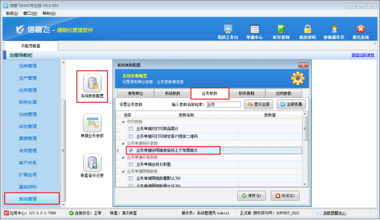 在功能導航窗點擊系統(tǒng)管理---系統(tǒng)參數(shù)配置,業(yè)務(wù)參數(shù)下--業(yè)務(wù)單據(jù)相關(guān)參數(shù)下勾選“業(yè)務(wù)單據(jù)多明細表格按上下布局顯示”,如圖所示: