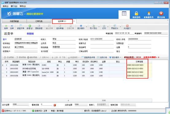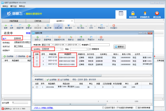 送貨單軟件支持客戶先下訂單,送貨時引用訂單發貨,有用戶存在客戶下了好幾筆訂單,發貨需要一起發貨,如何在軟件中操作?