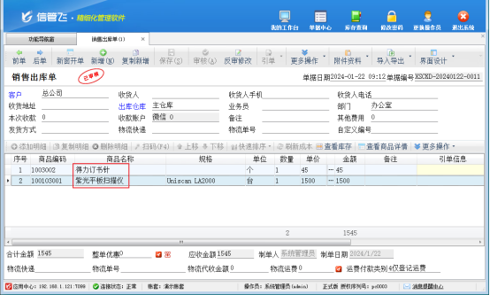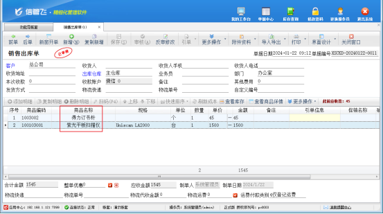 在功能導航窗點“銷售管理”—》“銷售出庫單”即可進入“銷售出庫單”界面,系統默認的單據內容是居左顯示的。