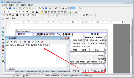 打印模板四舍五入顯示兩位,在開單界面打印下點擊“打印格式設計”,選擇打印模板,點擊“設計格式”進入模板設計器,金額設置四舍五入需要調(diào)用RMRound函數(shù),打開金額文本框,復制取整調(diào)用數(shù)據(jù)項:[RMRound([單據(jù)主體."應收應付金額"],2)],然后確認保存,如下圖: