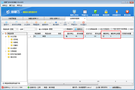 更好地管理庫存:通過設(shè)置輔助單位,我們可以更清晰地了解庫存情況。比如,我們可以知道某種商品一共有多少箱,每箱又包含多少個,從而更準(zhǔn)確地把握庫存量。如下圖所示,啤酒剩余庫存96瓶(8打)。