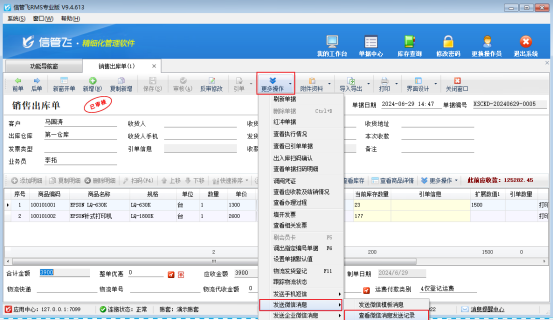 單據界面,更多操作下---發送微信消息---查看微信發送記錄,查看微信消息發送情況,如圖所示: