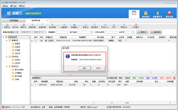權(quán)限設(shè)置完成后,使用操作員賬號重新登陸軟件,重新過賬送貨單,即可過賬成功,如下圖所示。