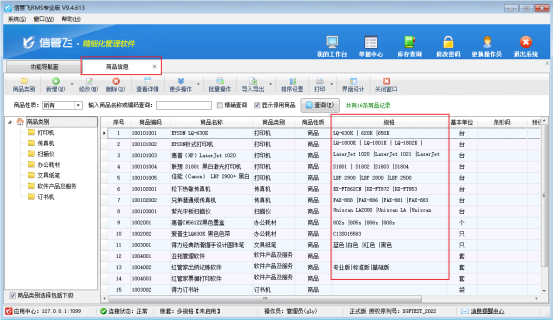 導入成功后,商品信息界面顯示商品由“|”分成多種規格,如圖所示: