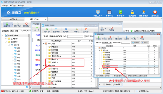 信管飛RMS標(biāo)準(zhǔn)版和專業(yè)版支持出納模塊,可登記現(xiàn)金和銀行日記賬,日記賬登記時(shí)需要選擇收支類別,支持新增收支類別。操作員新增收支類別后在新增憑證無法選擇新增的收支類別,該如何解決?