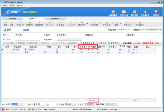 設置完成后,新開單保存,重新打開送貨單列表,即可顯示成本金額及其合計。