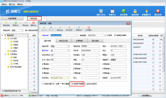 首先需要在基礎(chǔ)資料商品信息中勾選“啟用批號(hào)管理”,如下圖所示: