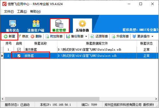 打開紅色應用中心程序,在賬套管理中點擊“新建”新增新賬套,如下圖所示: