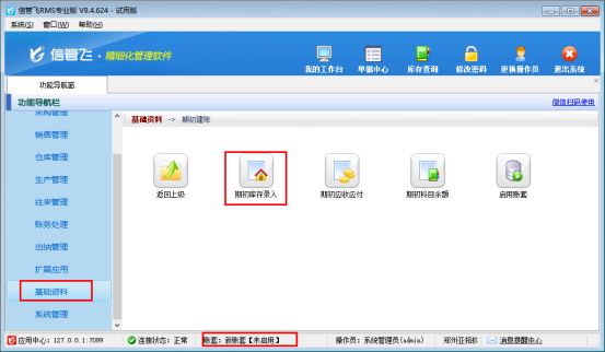 期初庫存錄入完成后,在“基礎資料”—“期初建賬”中啟用賬套可以正常使用軟件。