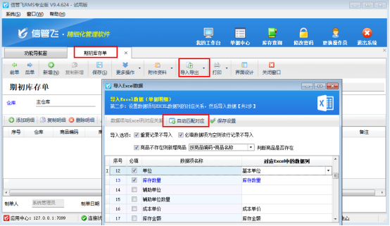 三、登錄新賬套,導入期初庫存