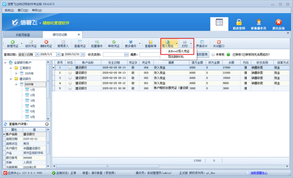 除了導入功能外,信管飛出納記賬軟件還具備豐富的報表生成、數據分析等功能,為企業提供了全方位的財務管理解決方案。無論是日常記賬還是財務分析,都能輕松應對。