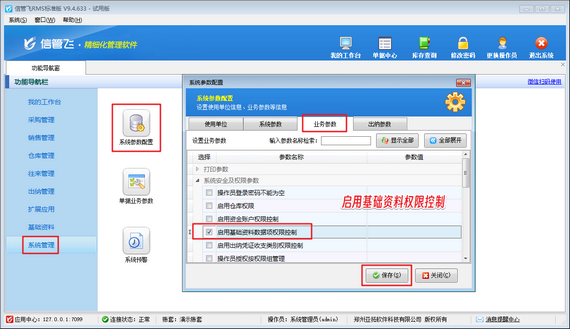 設置過程簡單明了:在系統管理模塊中,找到系統參數配置,并啟用基礎資料數據項權限控制功能。保存配置后,使用系統管理員賬號登錄軟件,進入操作員管理及授權界面,即可為不同操作員分配具體的權限。