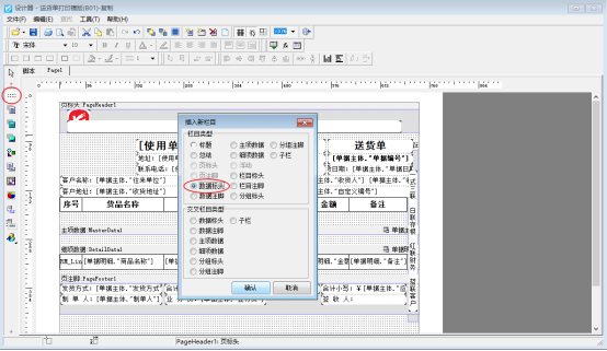 在單據界面點擊打印---打印格式設計,選中模板點擊設計格式,進入模板設計器,調整“頁標頭”邊條高度,增加“數據標頭”邊條,標題內容移動到“數據標頭”邊條內,設置完成,預覽查看,如圖所示: