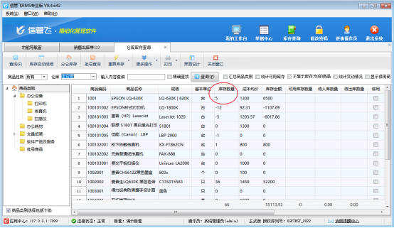 例如商品名稱“EPSON LQ-630K”,倉庫庫存數量是5個,出庫單開單界面點擊刷新庫存當前庫存數量是0,經檢查發現原因是該商品入庫單發生時間是5月30日14點22分,銷售單出庫時間是5月30日10點,如圖