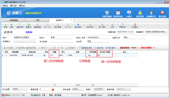 信管飛送貨單軟件、信管飛RMS軟件等可開銷售單和打印銷售單,軟件中默認有十幾種打印模板格式,有用戶需要在打印模板上體現客戶的訂單數量信息,內置模板中沒有此數據項,本文以內置模板進行示范如何添加訂單累計數量。