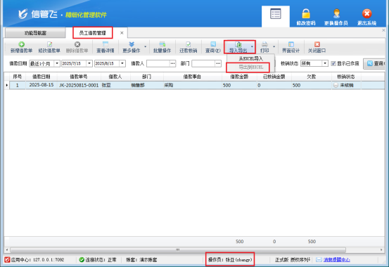 下面為您詳細介紹下如何在軟件中設置操作員不可導出員工借款單: