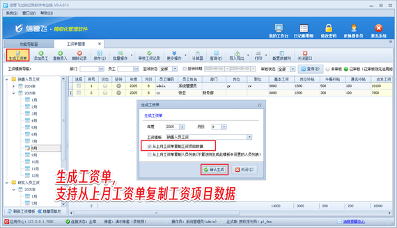 智能計算引擎大幅簡化操作流程,輸入基礎數據后,系統可自動根據工資模版精準核算應發/實發工資,并支持從上月數據快速復制,減少重復錄入。