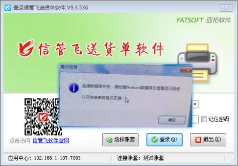 演示視頻觀看鏈接:登錄軟件提示連接數據庫失敗解決方法演示視頻 部分用戶在登錄軟件時可能會提示“連接數據庫失敗,請檢查Firebird數據庫引擎是否已啟動以及連接參數是否正確!”,導致軟件登錄不上,如下圖所示: 出現這