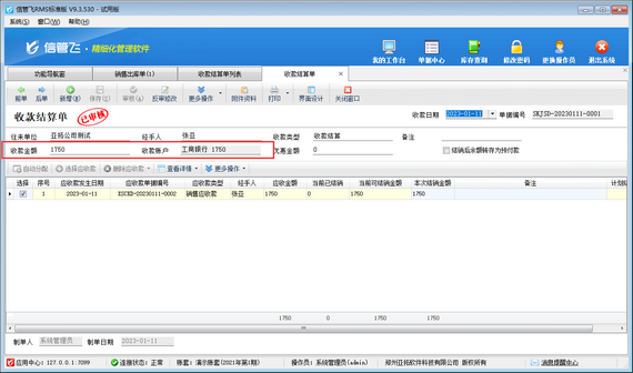 演示視頻觀看鏈接:http://www.uzaiuzai.com/news/video/202301/1859.html 收款結算單可用于登記收款信息,并結銷應收款記錄,信管飛軟件支持在開銷售出庫單時直接輸入本次收款金額,銷售出庫單審核后軟件會自動生成收款結算單并結銷該單據產生的應收款。 如