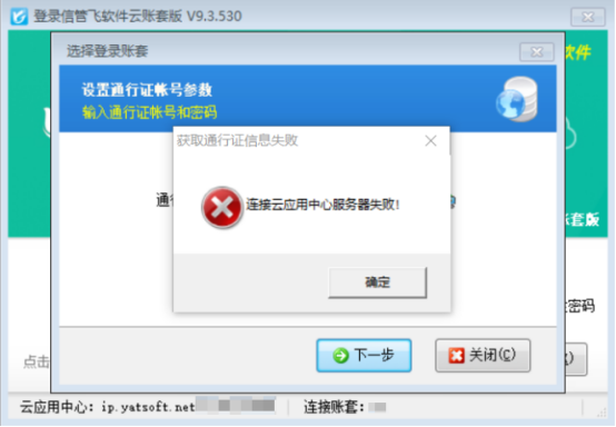 演示視頻觀看鏈接: 云賬套登錄提示“連接云應用中心服務器失。 保绾谓鉀Q演示視頻 部分用戶在登錄云賬套時可能會出現登錄不成功,彈出如下“連接云應用中心服務器失!”的提示: 出現此種提示一般是
