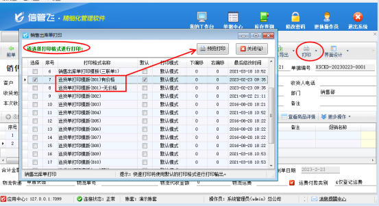 信管飛系列軟件都支持自定義設計打印模板,軟件單據中默認有設計好的打印樣式,有用戶存在打印有價格和無價格兩種送貨單的打印需求,這種在軟件中該如何設置?本文以“信管飛RMS軟件”為例示范下。 演示視頻觀看鏈接:http://www.uzaiuzai.com/news/video/202302/1917.h