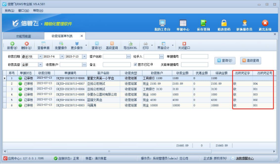 信管飛RMS標準版和專業版中包含出納管理功能,可登記現金、銀行日記賬,往來管理收付款結算時支持轉記出納憑證,方便后期在日記賬中直接查詢當前資金賬戶的實時余額。如何查看收付款結算單是否轉記過出納憑證?本文以“信管飛RMS軟件專業版”為例,示范下收款結算單如何查看是否轉記憑證。 演示視頻觀看鏈接:如何查看