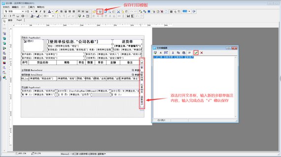 演示視頻觀看鏈接:打印模板如何修改右側多聯單用途備注演示視頻 送貨單一般情況下是一式三聯(存根聯、財務聯、客戶聯),如下圖所示。有用戶需要打印一式二聯、一式四聯或者一式五聯,需要修改送貨單右側多聯單用途備注。軟件支持自定義修改,本文介紹一下操作方法。 打開一個銷售出庫單,在單據界面工具欄點