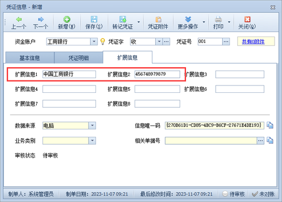 出納記賬軟件在登記出納憑證時(shí),支持將往來單位擴(kuò)展信息提取到憑證的擴(kuò)展信息內(nèi)顯示,有用戶需要提取往來單位的開戶銀行和銀行賬號(hào)信息到出納憑證內(nèi)顯示,本篇文章介紹一下操作方法。 演示視頻觀看鏈接:登記憑證時(shí)如何調(diào)用顯示往來單位的開戶銀行和銀行賬號(hào)信息演示視頻 在功能導(dǎo)航窗點(diǎn)擊“系統(tǒng)管理”—》“系