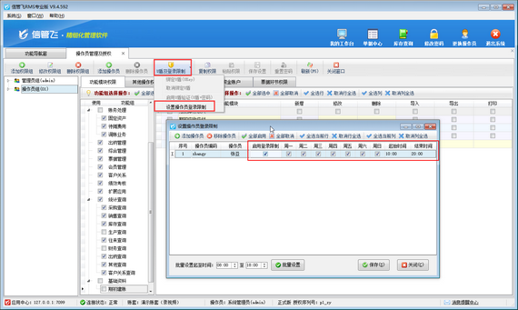 演示視頻觀看鏈接:當(dāng)前操作員處于限制登錄時(shí)間,無法登錄系統(tǒng),如何解決演示視頻 部分信管飛軟件用戶在登錄軟件時(shí)會(huì)出現(xiàn)軟件登錄不成功的情況,如下圖所示,系統(tǒng)彈出提示信息:當(dāng)前操作員處于限制登錄時(shí)間,無法登錄系統(tǒng)! 信管飛系列軟件支持自定義設(shè)置操作員登錄軟件的時(shí)間,設(shè)置后,操作員在受限制時(shí)間內(nèi)則無