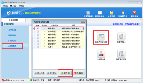 信管飛軟件支持維護(hù)客戶銷售價格,可以對不同客戶的商品價格進(jìn)行集中管理。并且支持設(shè)置銷售價格的優(yōu)先級,比如:客戶最近價、預(yù)設(shè)售價等。有部分用戶使用時修改了商品價格開單時選擇商品沒有獲取修改后的最新價格,該如何解決? 出現(xiàn)此問題原因:系統(tǒng)管理界面價格優(yōu)先級,第1級價格設(shè)置的是客戶最近價;用戶修改的是商品信