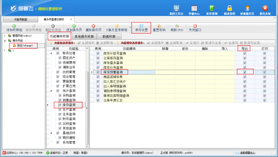 信管飛軟件支持設(shè)置多個操作員賬號并對操作員賬號設(shè)置權(quán)限,有用戶操作員賬號登錄時,庫存預(yù)警查詢界面會出現(xiàn)導(dǎo)出EXcel顯示灰色,無法進(jìn)行導(dǎo)出的情況,這是由于操作員沒有導(dǎo)出權(quán)限造成的,本篇文章以“信管飛RMS專業(yè)版”為例介紹下如何解決? 使用系統(tǒng)管理員賬號登錄軟件,在功能導(dǎo)航窗點擊“系統(tǒng)管理”—》“操作員