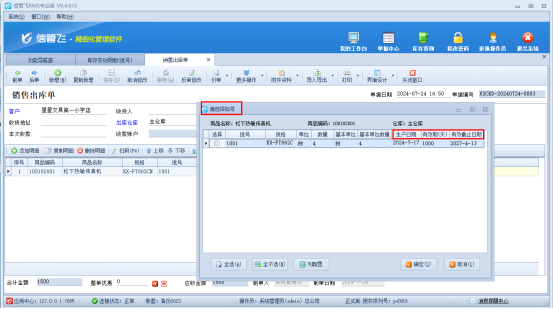 銷售時選擇批號可查看到相應(yīng)的有效期信息 在當(dāng)今快速變化的商業(yè)環(huán)境中,庫存管理的精準(zhǔn)性與效率直接關(guān)系到企業(yè)的運營成本、產(chǎn)品質(zhì)量控制及客戶滿意度。特別是對于涉及食品、藥品、化妝品等需要嚴(yán)格追蹤產(chǎn)品生命周期的行業(yè)而言,批號管理更是不可或缺的一環(huán)。信管飛RMS軟件,作為一款集先進管理理念與技術(shù)創(chuàng)新于一體的企業(yè)管理軟件,憑借其強大的批號管理功能,特別是支持輸入